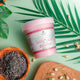 احصل على كمية وفيرة من مقشر الجسم الرائع هذا وتمتع بالروائح المذهلة لمنتجعك الصحي في المنزل. مع ملح البحر الوردي في الهيمالايا وقليل من النكهة ، بفضل إضافة زيت البرتقال الحلو ، يتميز هذا المقشر أيضًا بزيت المورينغا والأروروت وزيت الذرة والنعناع وزيت عباد الشمس