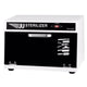 Heats to heats to 180°F in about thirty minutes, no thermostat needed, and features UV sterilizer to keep towels clean and fresh. Includes a water-drip tray and two stainless steel racks that will not rust. Holds 24 facial-sized towels (100% Cotton washcloths)