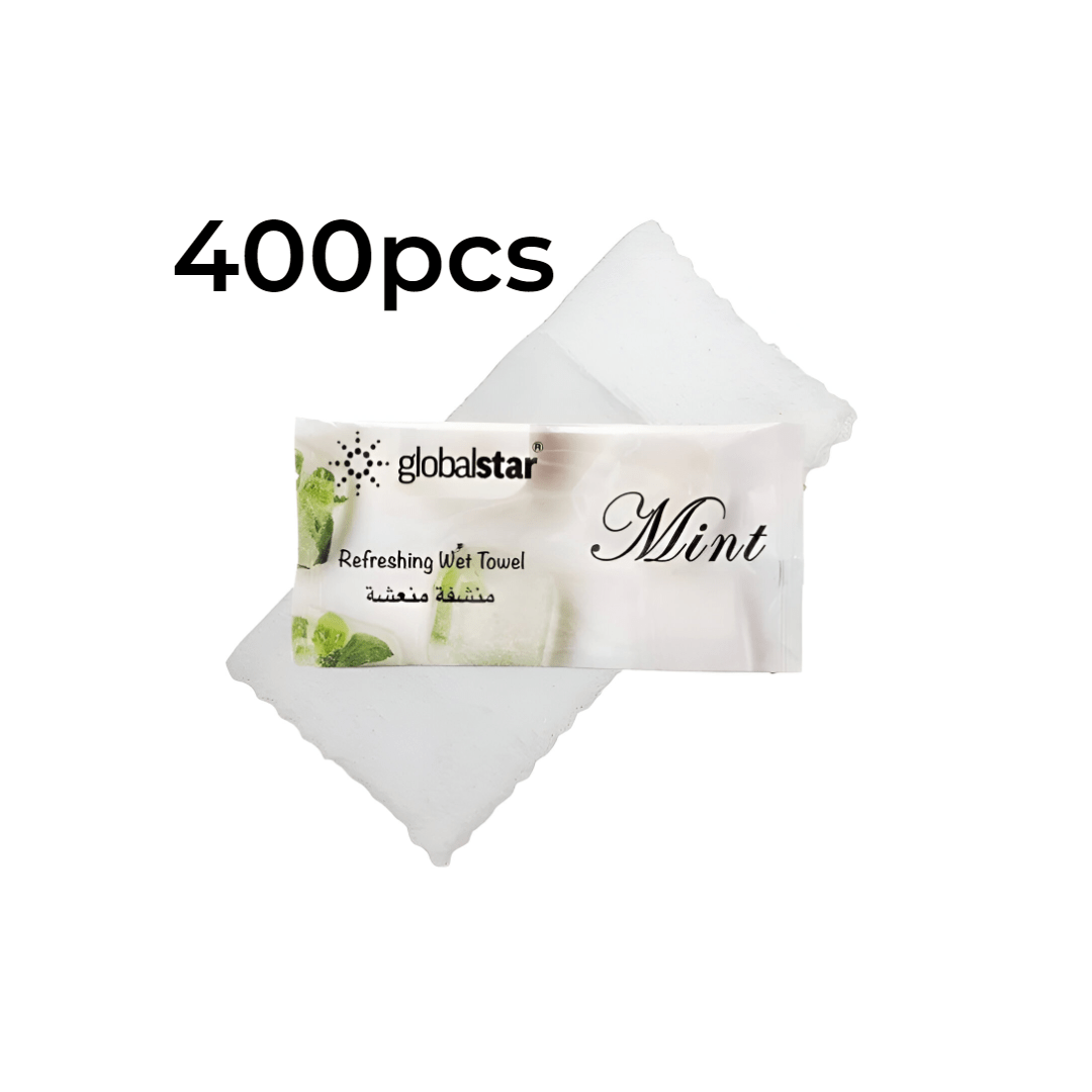 Globalstar Refreshing Wet Towel Mint 400pcs - Premium Hygienic Cotton Towels for All-Day Freshness and Cleanliness